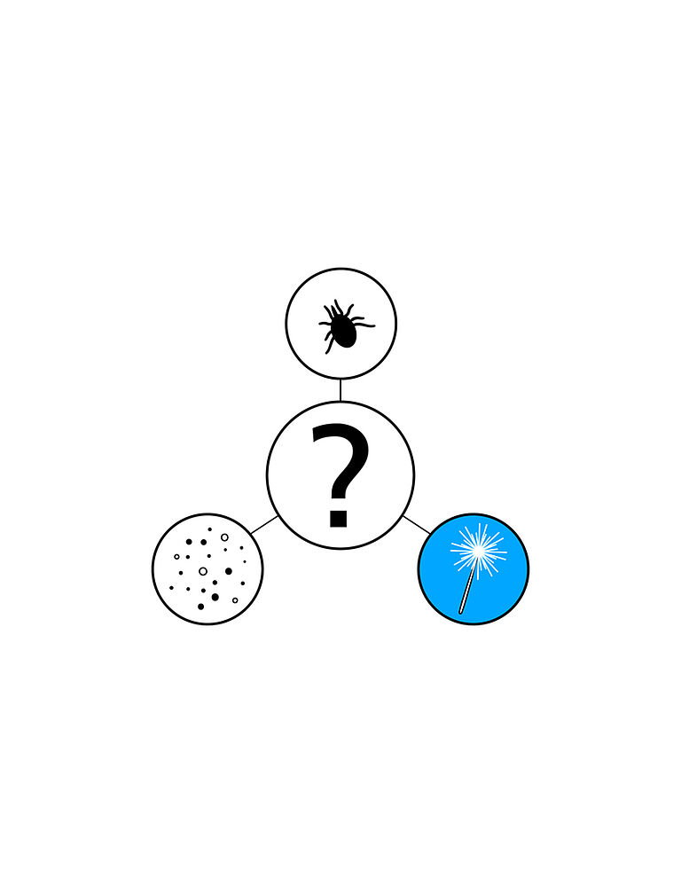 Não é fácil determinar na prática substância que está causando uma reação alérgica. Uma alergia também pode ser causada por outros desencadeantes, ou por uma combinação desses, do seu ambiente (pólen, farelos ou outras substâncias voláteis à sua volta). É necessário realizar um teste de alergias para determinar as substâncias que lhe causam alergias.