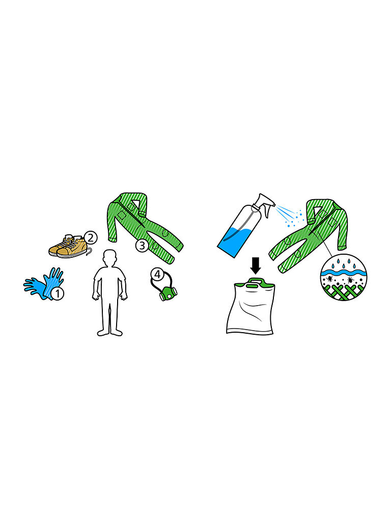 Prevent exposure via your skin by wearing protective clothing that covers your arms and legs.