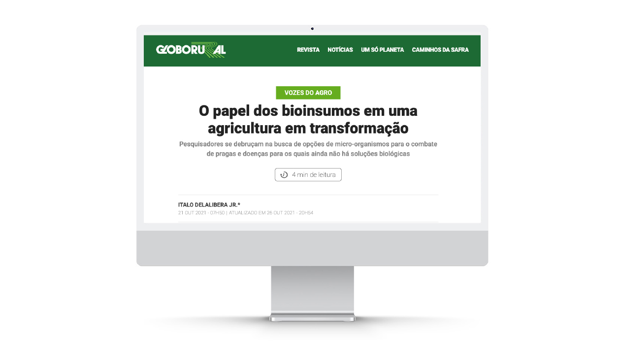 A participação do SPARCBio (São Paulo Advanced Research Center for Biological Control) na coluna Vozes do Agro no site da Revista Globo Rural apresentou mais um artigo em outubro. Assinado pelo professor e pesquisador Ítalo Delalibera Jr., o texto recebeu o título “O papel dos bioinsumos em uma agricultura em transformação. ” A coluna do SPARCBio é mensal, mas, de segunda a sexta-feira, especialistas, lideranças, pesquisadores e representantes de entidades do setor publicam análises exclusivas sobre temas como grãos, pecuária, sustentabilidade, tecnologia, logística, política e mercado no Projeto Vozes do Agro.