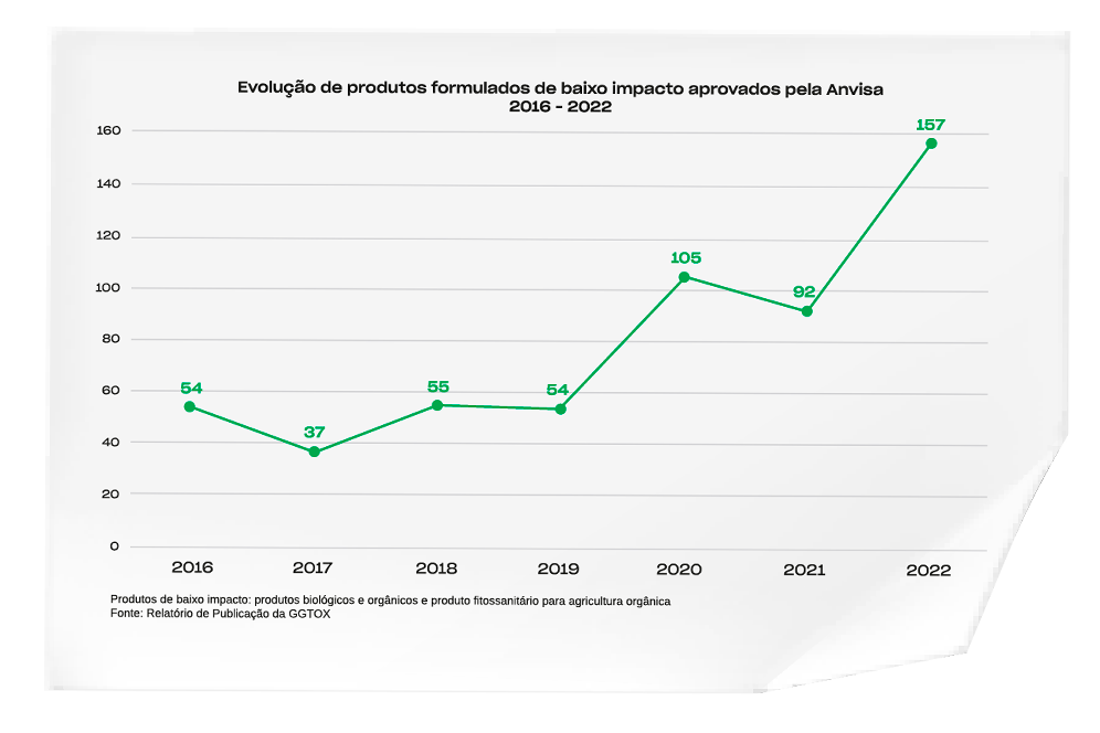 A análise desses produtos é realizada de forma prioritária, sendo que o tempo médio atualmente praticado pela Anvisa para a conclusão desse tipo de análise é de quatro meses. A série histórica, referente aos pedidos analisados e aprovados pela Agência, demonstra uma mudança de comportamento do mercado ao longo do tempo, quanto à adoção dessas práticas no combate de pragas agrícolas.