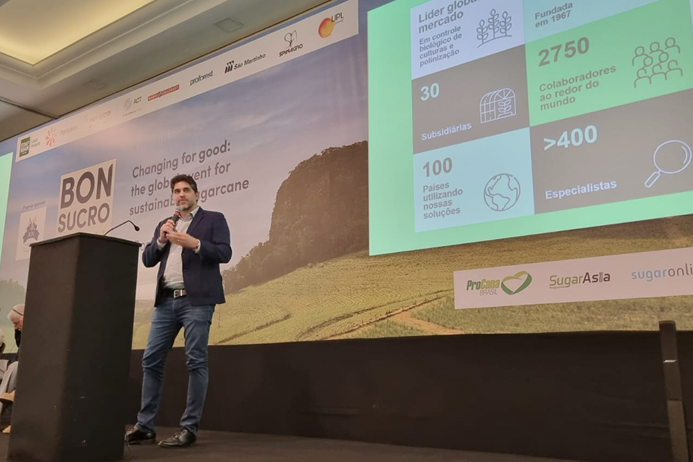 O diretor comercial da Koppert Brasil, Gustavo Herrmann, participou do painel Ação Climática no Setor Sucroenergético: estudos de caso sobre saúde do solo, agricultura regenerativa e biodiversidade, durante a Bonsucro Global Week, evento sobre sustentabilidade na cadeia da cana-de-açúcar.
