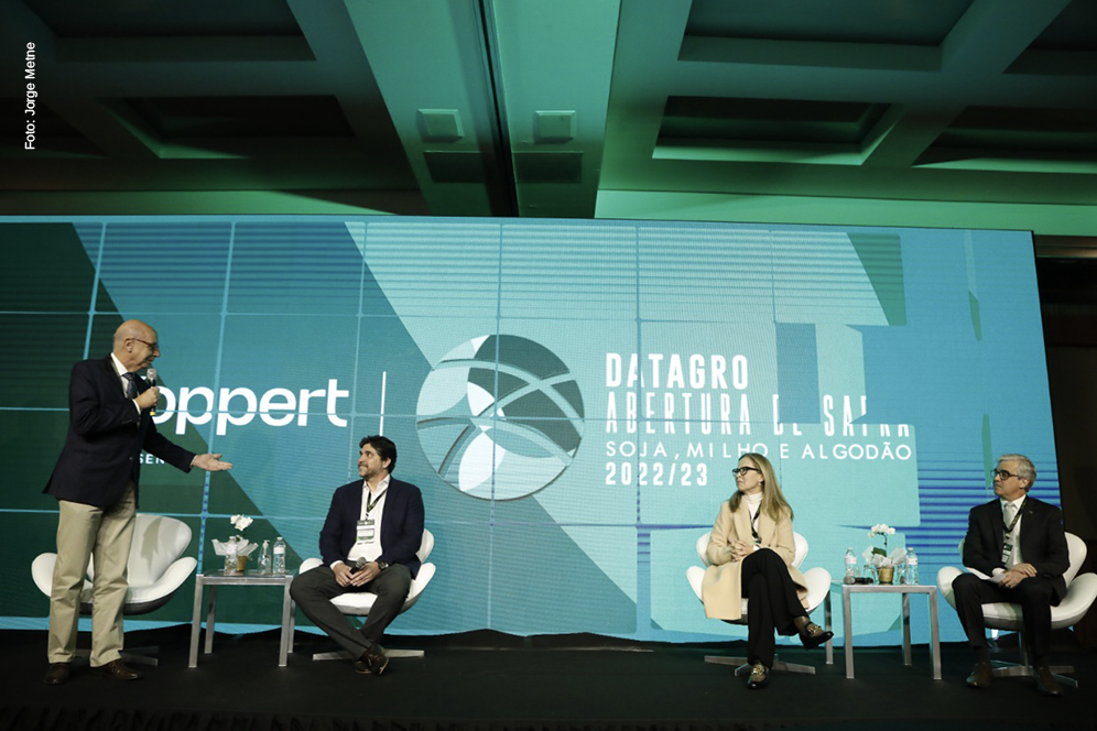 O evento Datagro Abertura de Safra Grãos - Soja, Milho e Algodão trouxe, pelo terceiro ano consecutivo, informações e dados sobre a safra 2022/23 e perspectivas para os próximos anos com temas como economia mundial e brasileira, mercado de insumos, biocombustíveis, complexo da carne e tendências para a produção, consumo e comercialização de grãos e fibras para os próximos 10 anos. O encontro aconteceu no dia 29 de agosto, no Hotel Renaissance, em São Paulo (SP).