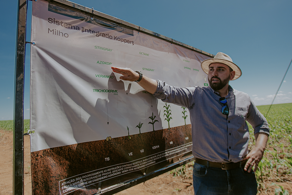 No ano de 2017, Mendonça ingressou na Koppert Brasil como estagiário do Departamento de Desenvolvimento Agronômico. “Foi a minha entrada no mercado de trabalho, naquele momento tínhamos uma equipe reduzida, Marcelino Borges Brito, nosso coordenador, eu e mais um outro estagiário, o que encarei como uma grande oportunidade de demonstrar minha capacidade, não medi esforços para entregar os melhores projetos de desenvolvimento de produtos.”