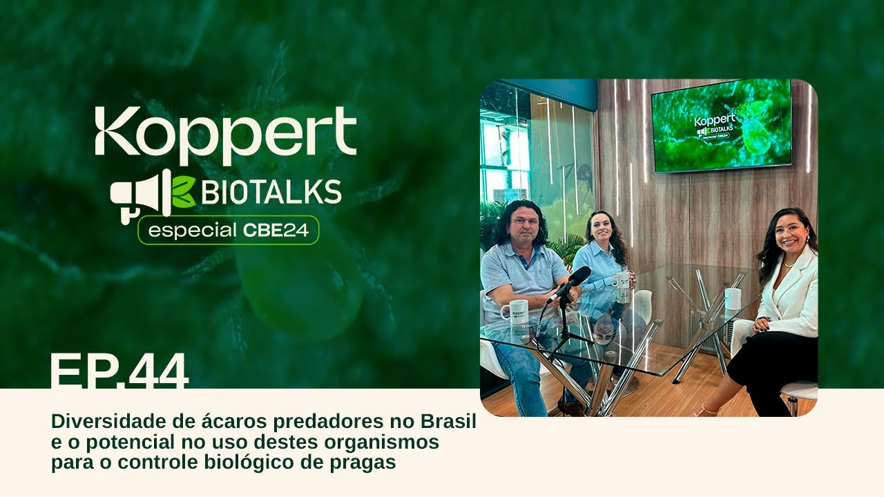 Neste episódio, a apresentadora, Renata Maron, conversa com especialistas sobre a "Diversidade de ácaros predadores no Brasil e o potencial no uso destes organismos para o controle biológico de pragas". Participam do podcast: Antônio Carlos Lofego, biólogo e professor da Unesp (Universidade Estadual Paulista Júlio de Mesquita Filho), e Marina Ferraz, bióloga e pesquisadora da Koppert.
