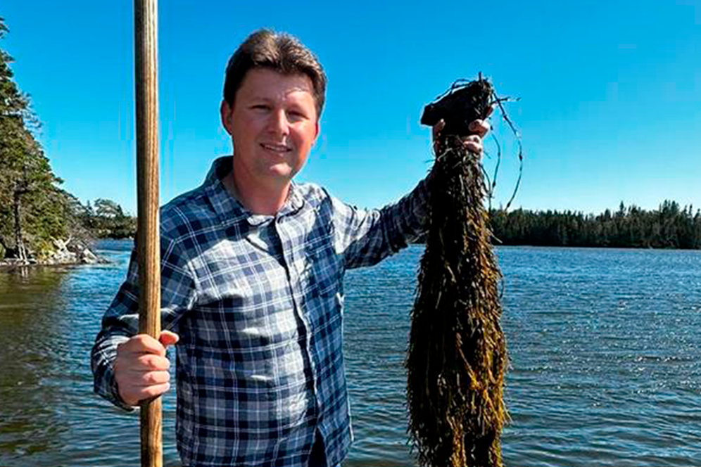 Helton participou do curso Proteção de Plantas, turma 21/22 e seu trabalho sobre o Stingray (Ascophyllum nodosum) no feijão rendeu como prêmio a viagem ao país. Na foto, sua participação do processo de colheita das algas marinhas das águas do Atlântico Norte, que depois são formuladas como os bioativadores.