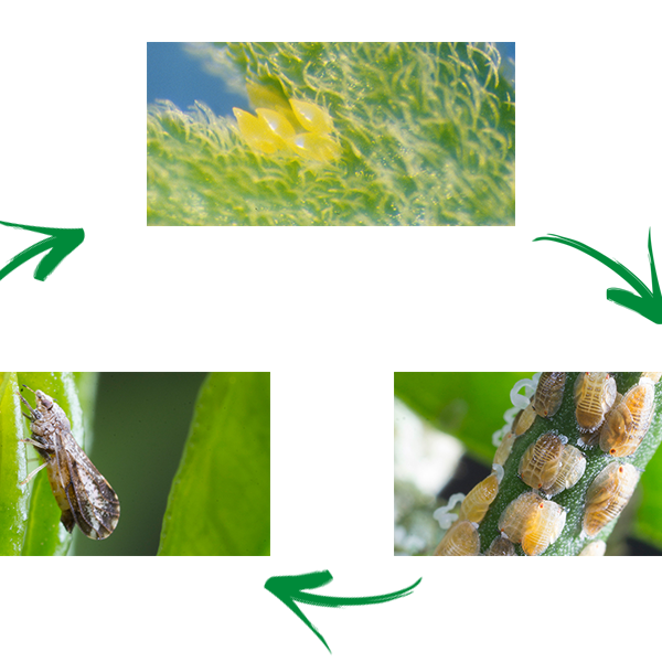 São insetos sugadores de seiva e, por suas picadas sucessivas, causam elevado dano, enrolando as folhas, retorcendo ou engruvinhando os brotos, impedindo assim, o crescimento normal da planta. Se a infestação for intensa, provocam o secamento dos ramos e a redução da produção. Devido ao líquido açucarado que expelem, atraem as formigas e favorecem o desenvolvimento de fumagina. Através de suas picadas, inoculam substâncias tóxicas as plantas. A infestação em período de brotação é sempre mais intensa, promovendo a super brotação da planta. Além destes danos, esta praga é um dos vetores da bactéria Candidatus Liberibacter, agente do “greening”, que é uma doença de origem asiática e africana constatada nos pomares brasileiros.