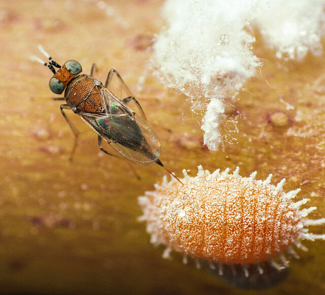 As Vespas Parasitoides são um grupo diversificado de insetos que parasitam outros insetos, controlando efetivamente suas populações. Essas minúsculas vespas põem seus ovos dentro ou sobre os corpos das pragas hospedeiras. Quando os ovos eclodem, as larvas da vespa se alimentam e acabam matando o hospedeiro. As Vespas Parasitoides são valiosas para o controle de pragas como lagartas, pulgões e moscas-brancas.