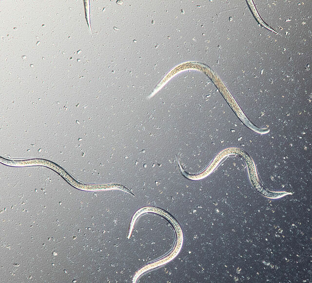 - Alimentação e reprodução: Os nematoides se alimentam das bactérias que se multiplicam e absorvem os nutrientes liberados pela atividade bacteriana. Isso fornece alimento para os nematoides e apoia sua reprodução. À medida que a população bacteriana no inseto hospedeiro continua a crescer, o mesmo ocorre com as populações de nematoides. Os nematoides se reproduzem, desenvolvendo-se em vários estágios juvenis até se tornarem adultos maduros.