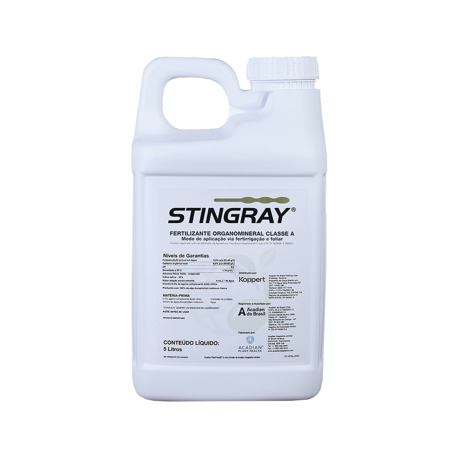 Stingray é um líquido solúvel em água, adequado para aplicação foliar, no solo (sulco), por gotejamento, fertirrigação e aplicação aérea.